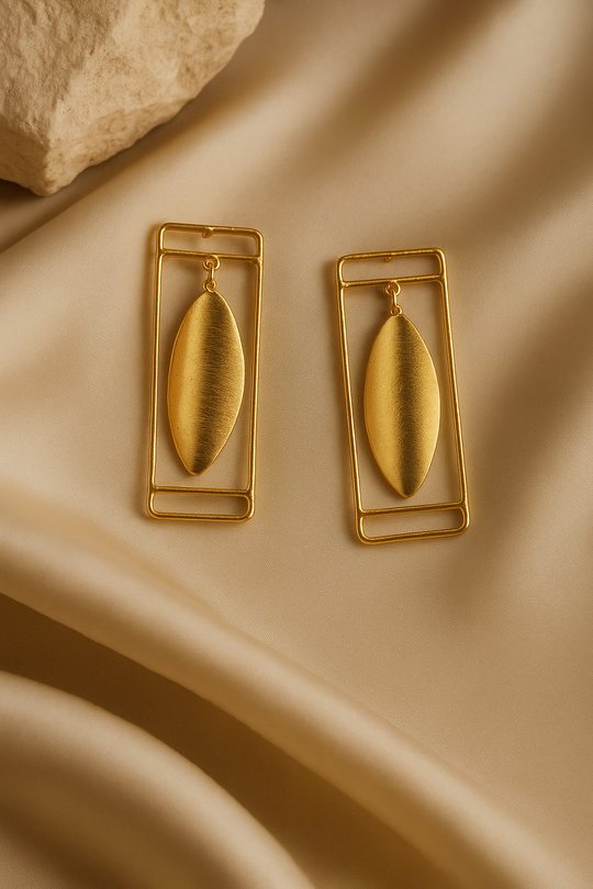 Refined and contemporary, these minimalist gold rectangular drop earrings from House of Raasya are perfect for elevating everyday and evening looks. Featuring a bold marquise-shaped drop nested in a sleek open rectangle frame, this design offers...Sale price Rs. 1,699.00Regular price Rs. 2,599.00 -